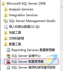 ?(1)依次選擇:開(kāi)始-〉所有程序-〉Microsoft SQL Server 2008-〉配置工具-〉SQL Server配置管理器,如下圖所示: